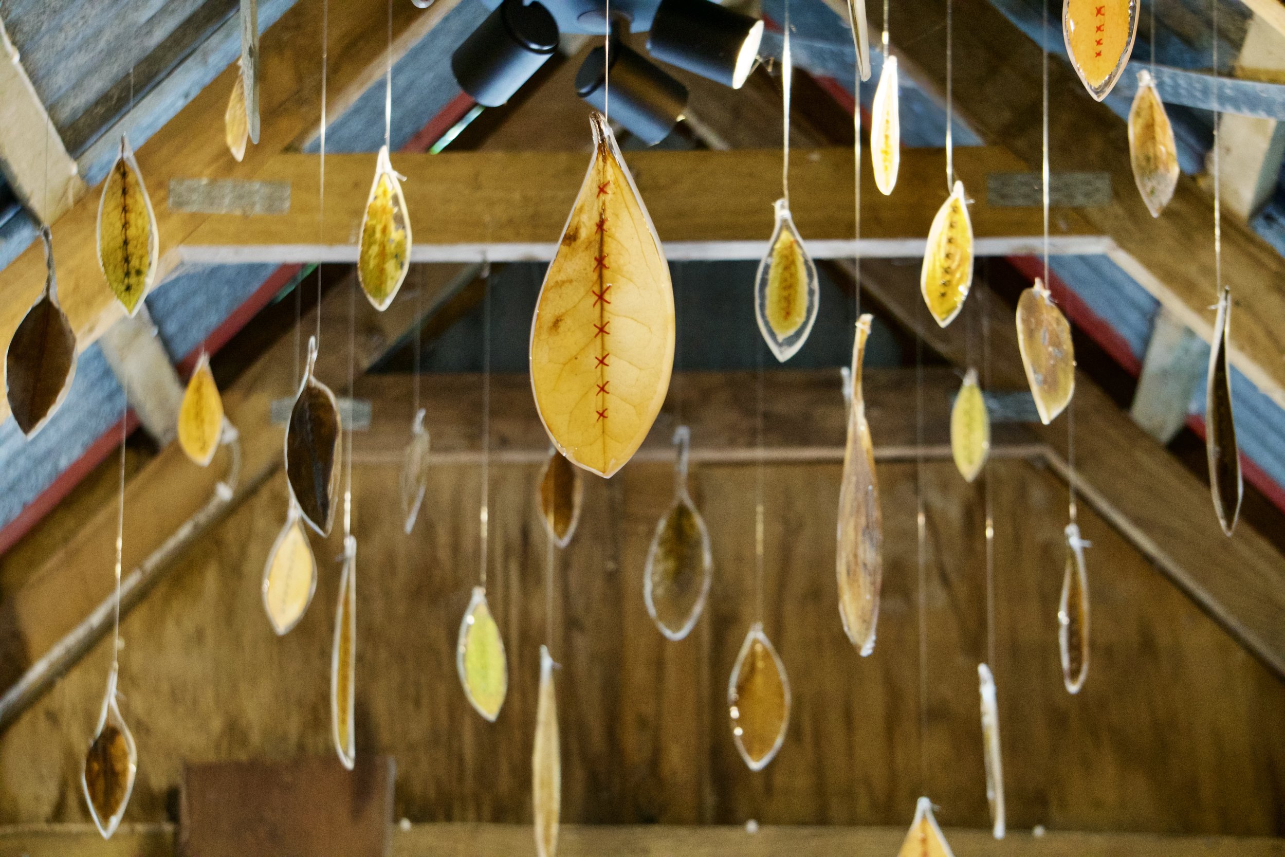 Fallen leaves, pressed, hand-stitched and set in resin. 2025